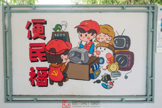 团队围绕党群服务集市“便民、惠民、亲民”的核心定位,将当地特色文化融入墙绘创作——一幅幅生动鲜活的作品,既展现了党建引领乡村发展的理念,又融入了当地文化元素,不仅让集市周边的老化场地焕然一新,更提前为党群服务集市后续开展政策宣传、便民服务、文化活动等奠定了温暖亲切的场景基础。