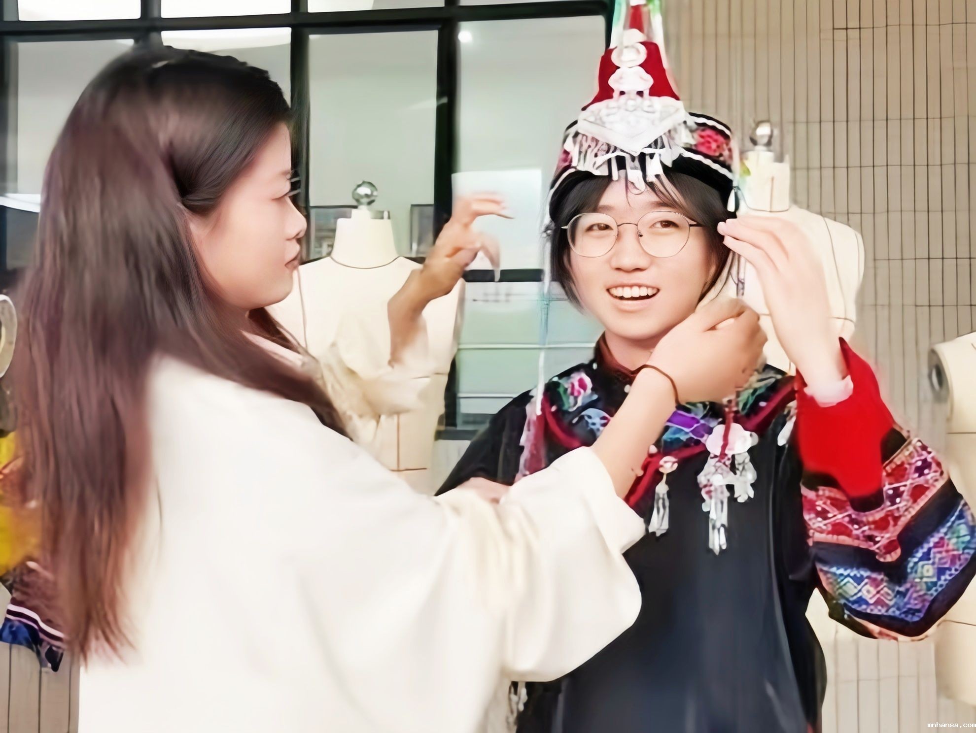 活动打造“体验+互动”的模式,非遗传承人现场指导同学们亲手操控木偶、研习古法通筋、体验篆刻刀法、感受扎染工艺,在试穿畲族凤凰冠的璀璨银饰、捏制Q弹鱼丸的趣味实践中,完成从旁观者到参与者的身份转变。当指尖触碰到温润的寿山石,当剪刀在红纸上勾勒出吉祥纹样,文化传承的种子在年轻一代的心中悄然种下。
